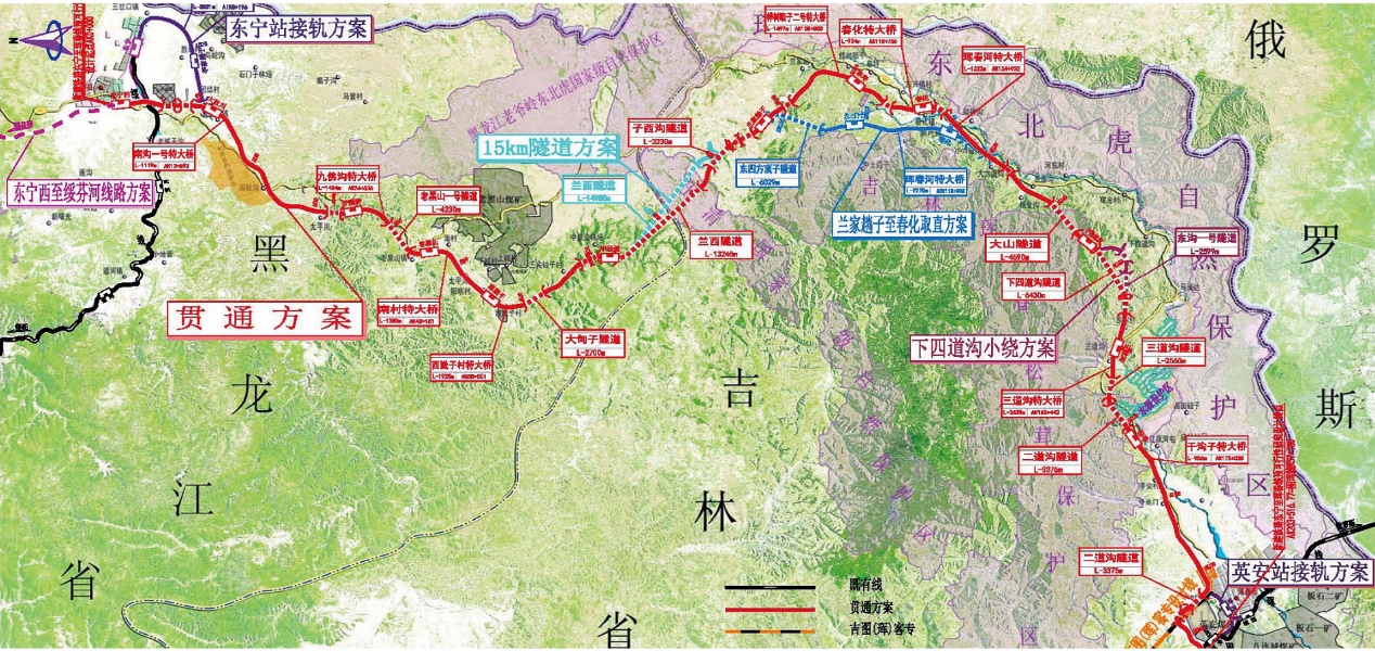 東寧至琿春鐵路位于黑龍江省和吉林省東部,自黑龍江省牡丹江市新設東寧西站東寧端引出,向南經(jīng)老黑山地區(qū)進入吉林省境內(nèi),沿琿春河經(jīng)春化、下四道溝、哈達門接入吉圖(琿)客專琿春站(并站,預留連接道岔),而后線路外繞琿春市區(qū),接入既有圖琿線琿春西站。線路正線全長203.299km。是東北東部邊境鐵路通道的組成部分,為國家Ⅰ級鐵路,估算總額112.03億元。