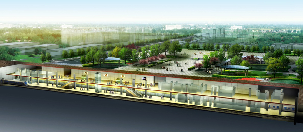 杭州地鐵2號線慶春廣場站位于杭州市江干區人民政府所在地,車站為14m島式站臺車站,總長329m, 總建筑面積 2.6萬平方米。本站為杭州地鐵2號線—期工程西北段起點站,車站為地下二層雙柱三跨鋼筋混凝土閉合框架島式車站。