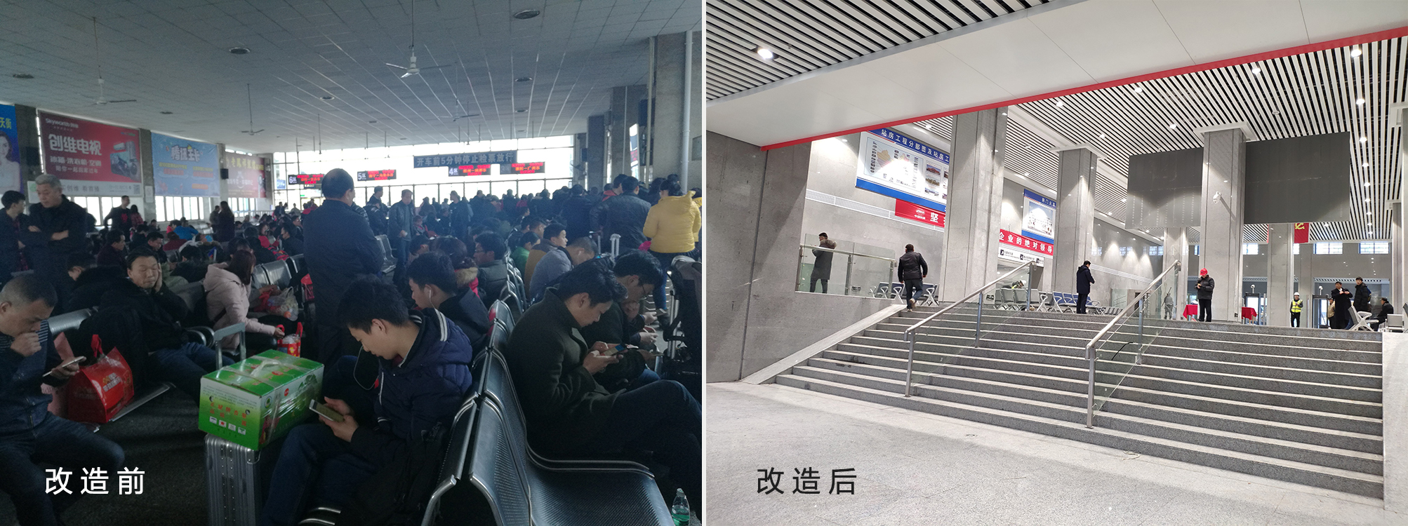 擴(kuò)建站房為—層框架結(jié)構(gòu)建筑。完善驗(yàn)證區(qū)域、安檢區(qū)域流線及功能;對(duì)候車廳內(nèi) 常旅客候車、重點(diǎn)旅客候車及軟席候車室重新進(jìn)行功能劃分;設(shè)置出站廳及相關(guān)輔助配套房屋以方便旅客出站。擴(kuò)建后候車廳面積為 3 9 4 5. 6 2 平方米, 擴(kuò)建后站房總建筑面積為8871.36平方米, 改造后, 整棟建筑造型簡潔大氣,以堅(jiān)實(shí)而穩(wěn)重的構(gòu)圖關(guān)系體現(xiàn)了荊門站濃郁的荊楚文化特征。