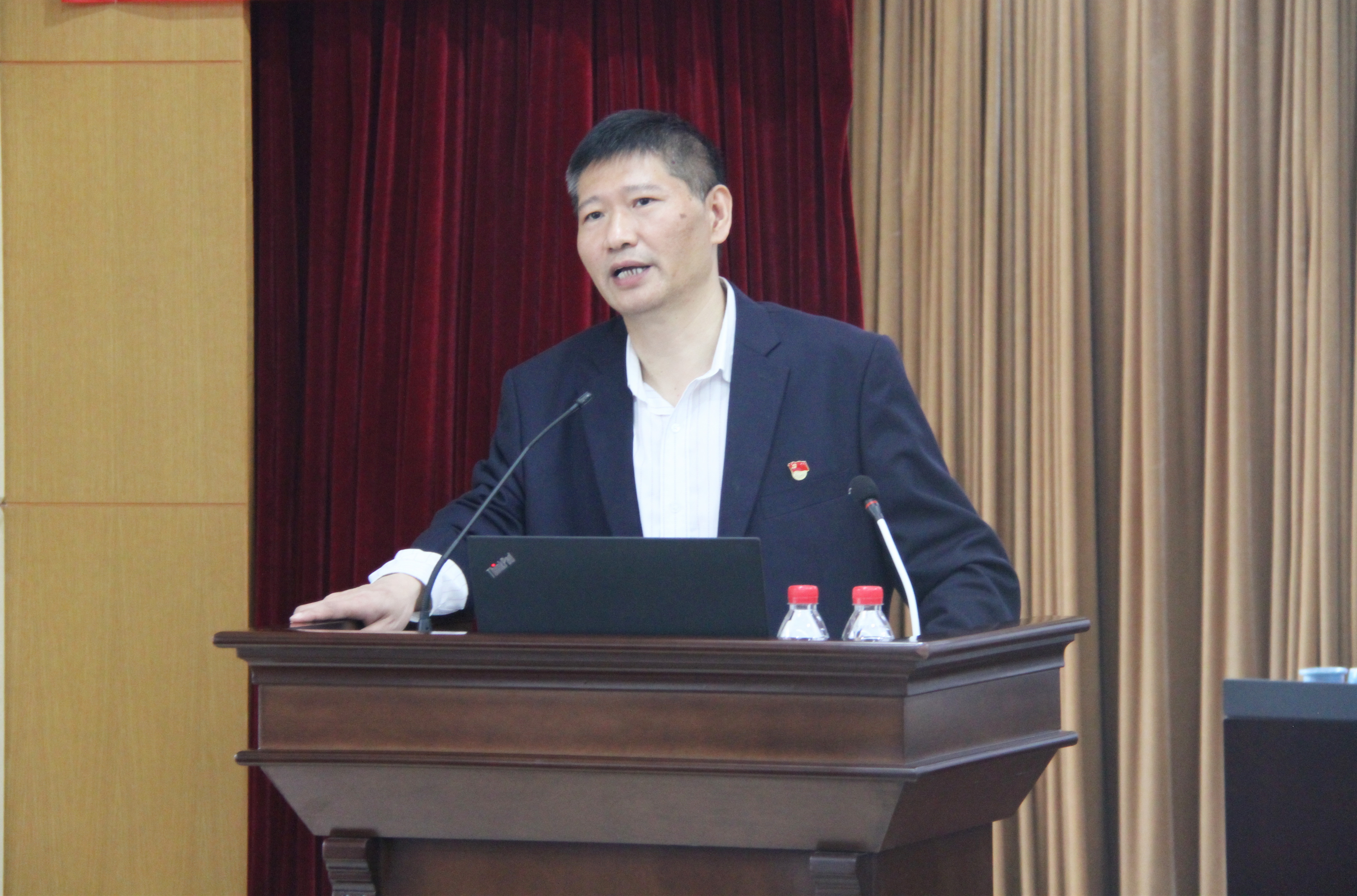 查京屏?xí)涀髁祟}為《“不忘初心、牢記使命” 堅(jiān)持守正創(chuàng)新、務(wù)實(shí)擔(dān)當(dāng)、精誠服務(wù) 全力夯實(shí)武漢院高質(zhì)量發(fā)展基礎(chǔ)》的講話。