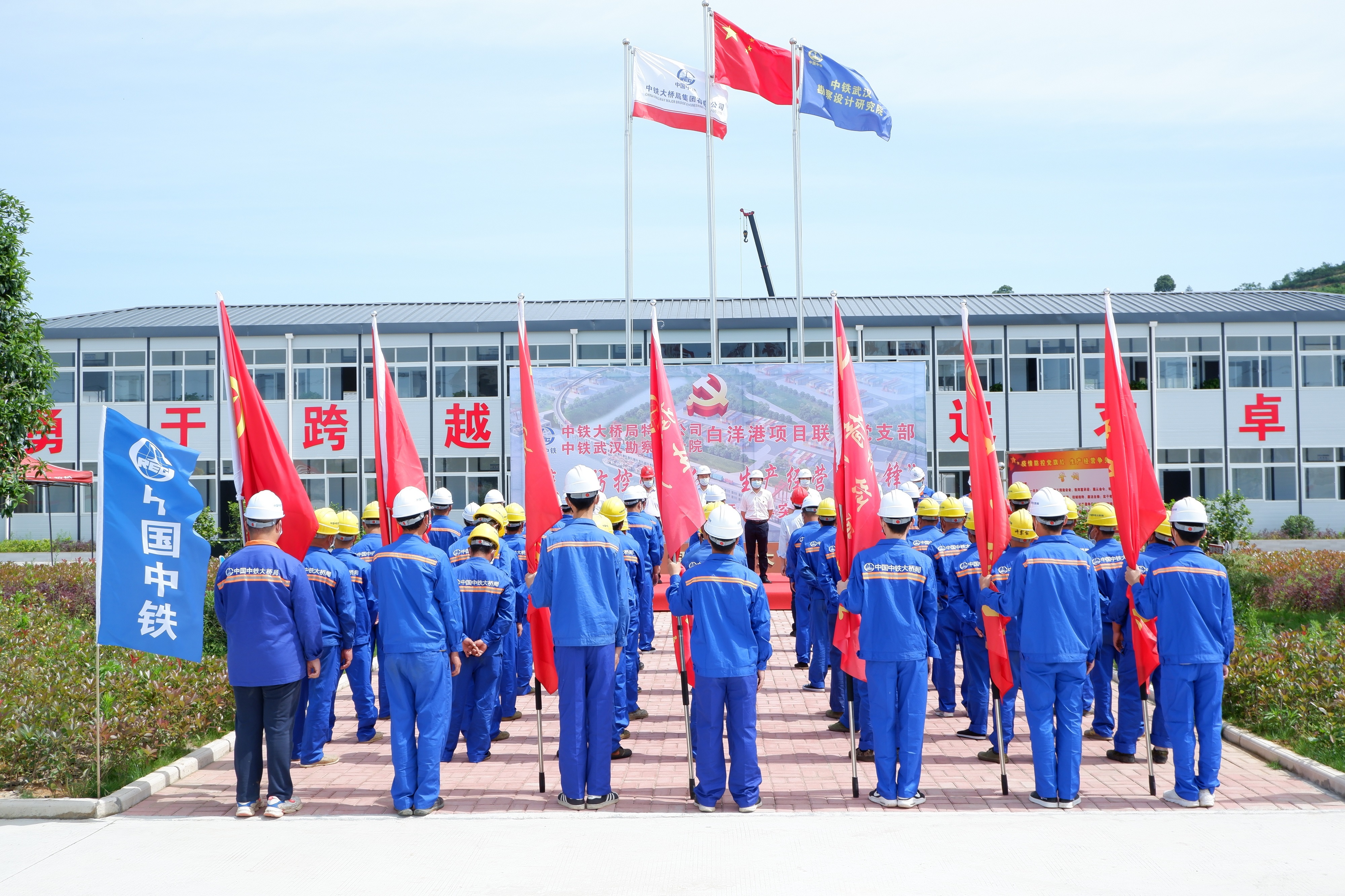 5月12日,由中鐵武漢院黨委、大橋局特種公司黨委聯合舉辦的“疫情防控黨旗紅、生產經營爭先鋒”黨建主題活動暨“五保一樹”推進會在白洋港項目現場隆重舉行。